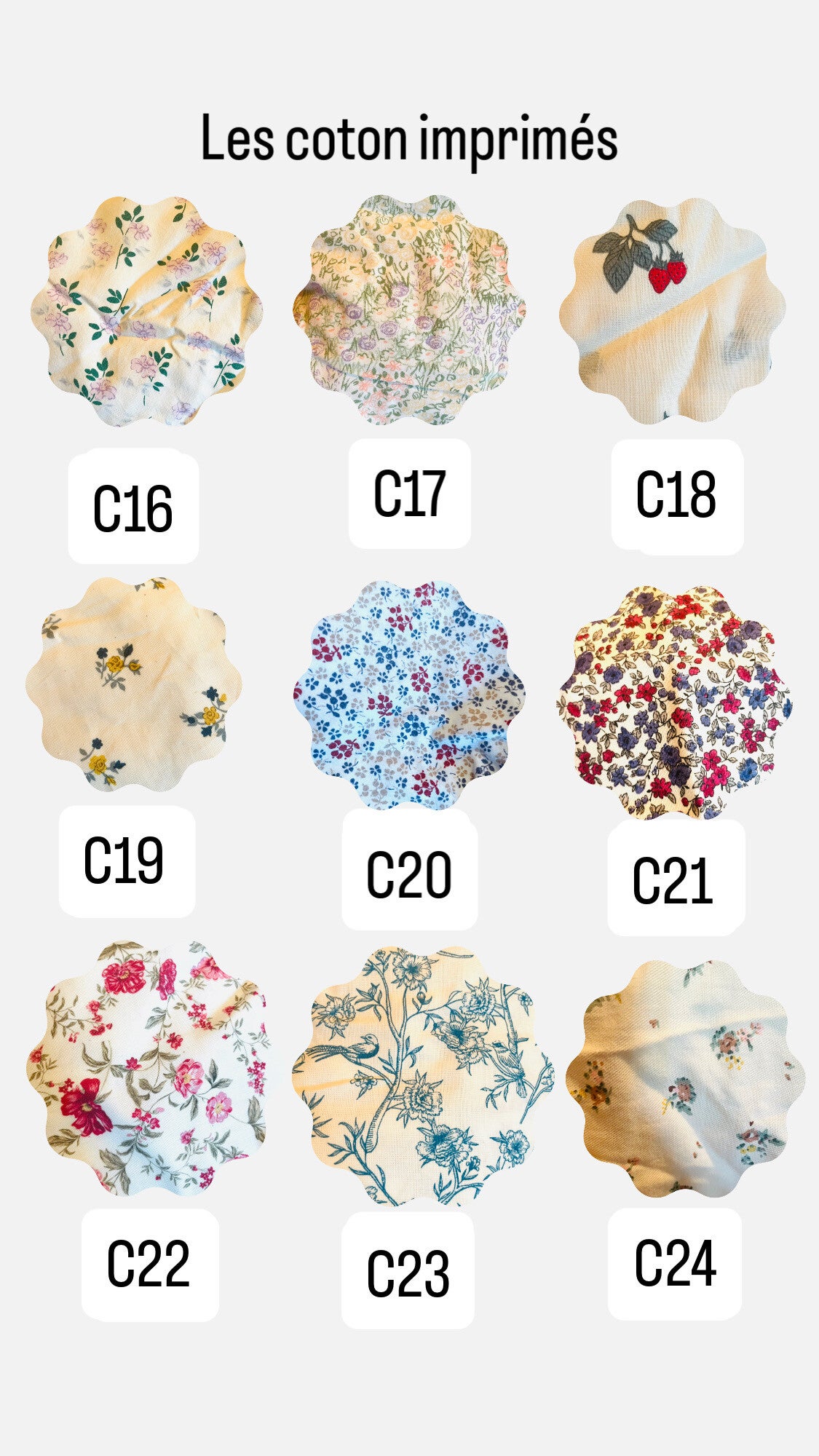 Vaste choix de tissus ici si les langes sont trop tachés 🤪