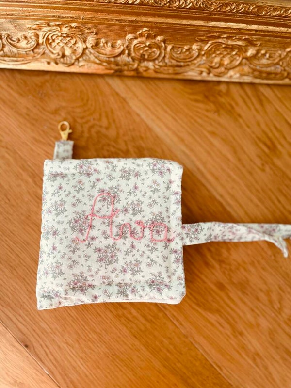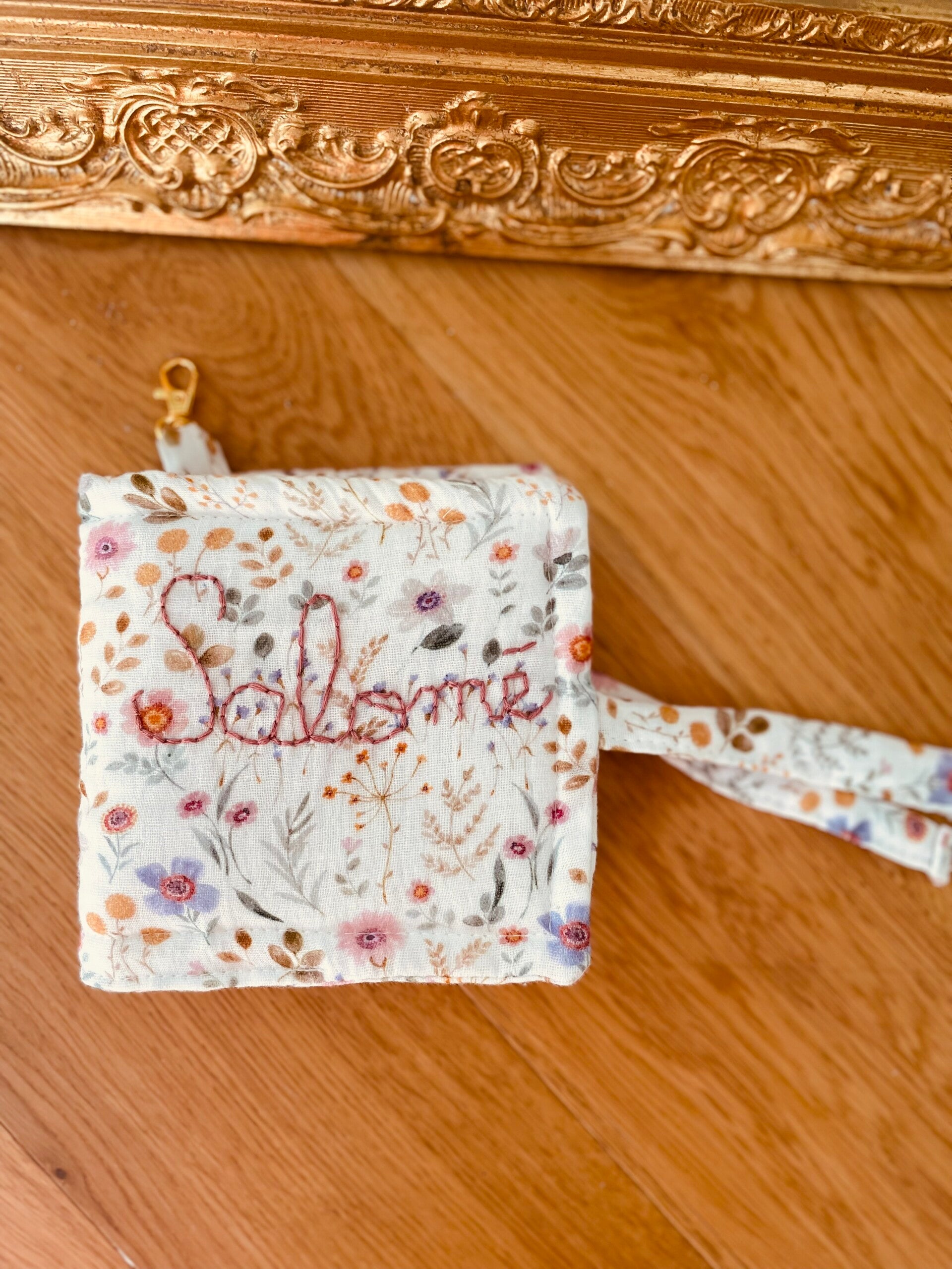 Album photo doudou avec prénom brodé à la main. Tissu de couverture de votre choix. Tissu des pages en lin blanc pour mieux faire ressortir les photos.