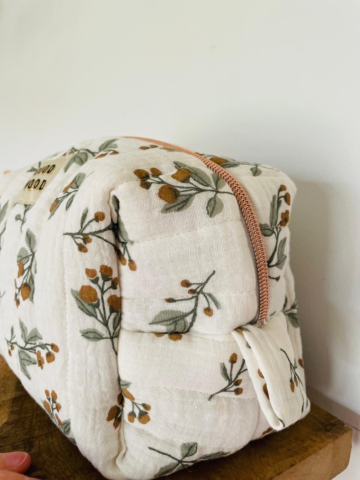 Vanity fleuri matelassé parfait pour ranger les essentiels de toilettes