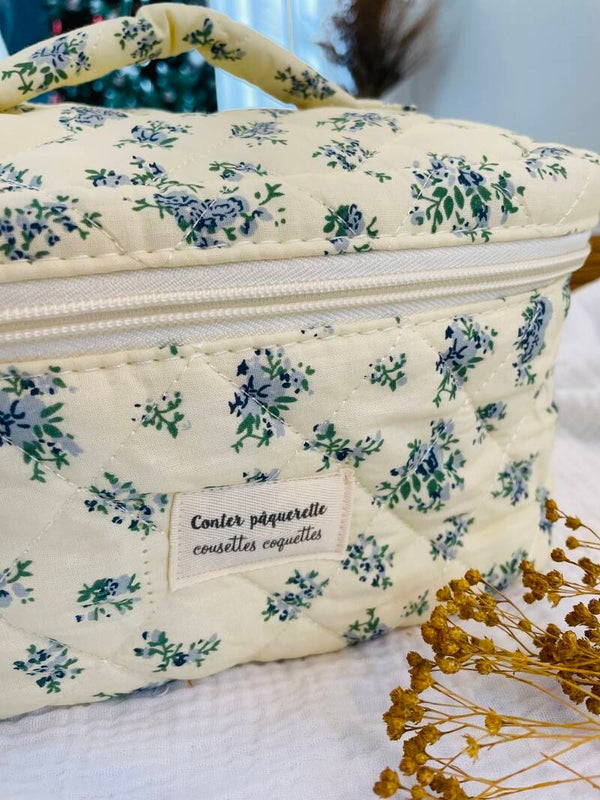 Vanity fleuri matelassé parfait pour ranger les essentiels de toilettes